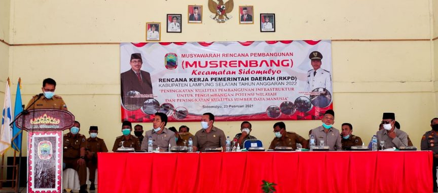 “Semua itu untuk membantu masyarakat untuk mewujudkan cita-cita serta dapat bersinergi dengan pemerintah kabupaten Lampung Selatan,” kata Pelaksana Harian (Plh) Bupati Lampung Selatan Thamrin membuka Musyawarah Rencana Pembangunan (Musrembang) Rencana Kerja Pemerintah Daerah ( RKPD) di Kecamatan Sidomulyo, di Gedung Serba Guna (GSG) Kantor Camat Sidomulyo, Selasa 23/02/2021.